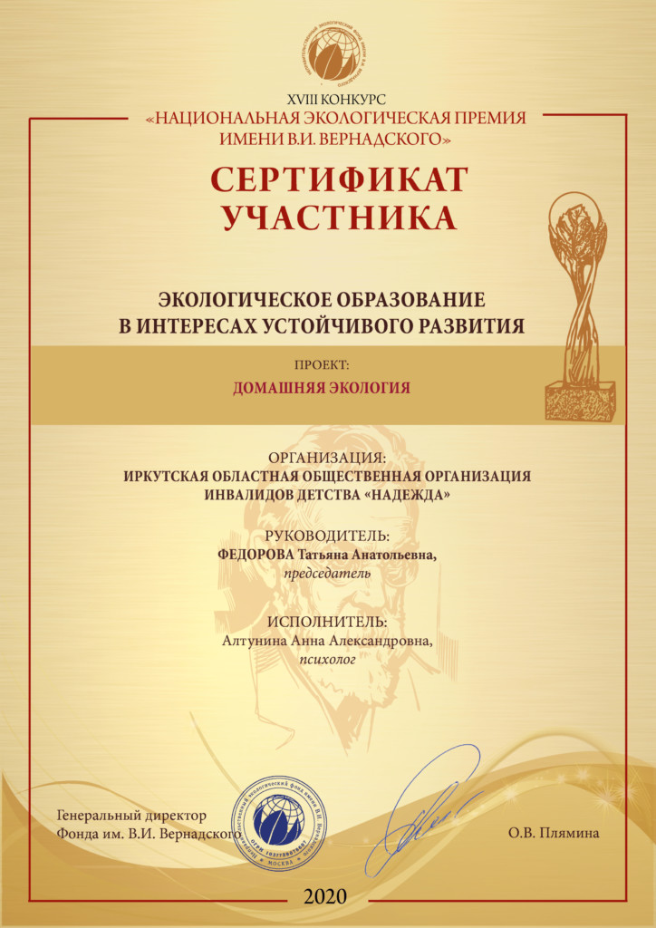 В прошлом году с рабочей программой по экологии жилища мы приняли участие в XVIII Конкурсе «Национальная экологическая премия им. В.И. Вернадского». Она реализуется при изготовлении изделий в мастерских, а также на специальных занятиях.По пятницам мы с ребятами проводим занятия «Домашняя экология»: рисуем контурные карты, смотрим фильмы и ролики о быте в других странах и экономии ресурсов, обсуждаем экологические проблемы в России. Мы считаем, что будущее нашей планеты зависит от каждого человека.