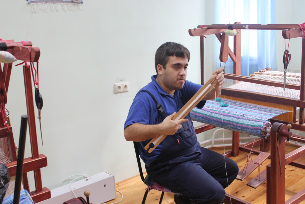 Вот уже на протяжении почти семи лет Данила работает в ткацкой мастерской ИОООИД «Надежда». Каждый день Данила приезжает на работу раньше всех – он помогает по утрам изготавливать свечи для Храма. Его работа состоит в сновании, подготовке утка, ткачестве на станке. В неделю он может изготовить до 10 дорожек! Помимо дорожек Данила делает тканые сумки, сидушки, чехлы и плетет на рамке. А еще он успевает посещать занятия по адаптивной физкультуре, живописи, музыке, чтению, изготавливать открытки, чесать шерсть, сочинять рассказы на литературной гостиной. И, конечно же, у него много друзей по работе, с которыми он весело проводит время и посещает культурные мероприятия в городе. Какая яркая и насыщенная жизнь у человека! У человека с расстройством аутистического спектра.