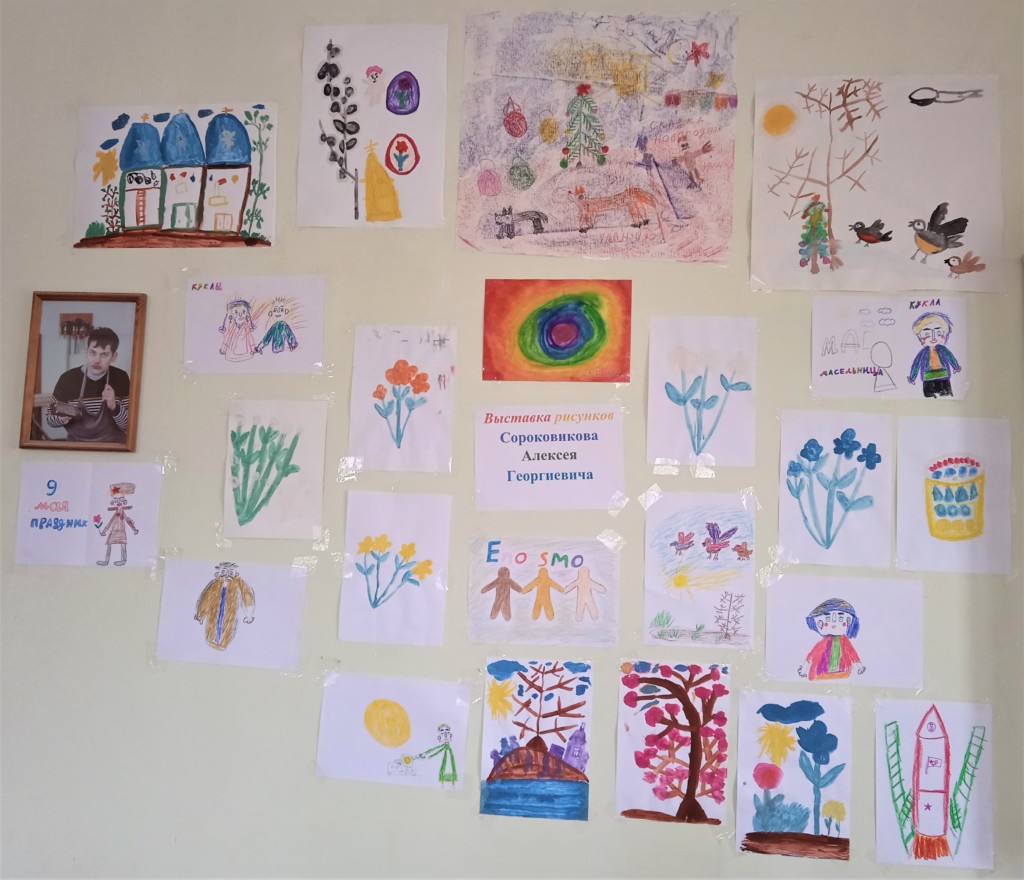 В «Надежде» открылась выставка рисунков Сороковикова Алексея. Алеша очень любит рисовать. Для него нарисовать несколько рисунков в день не составляет сложности. Леша в этом году принял участие во многих конкурсах рисунков, в том числе и международных. Он много старался, собирал свои работы в коллекцию и теперь все могут посмотреть на его труды.