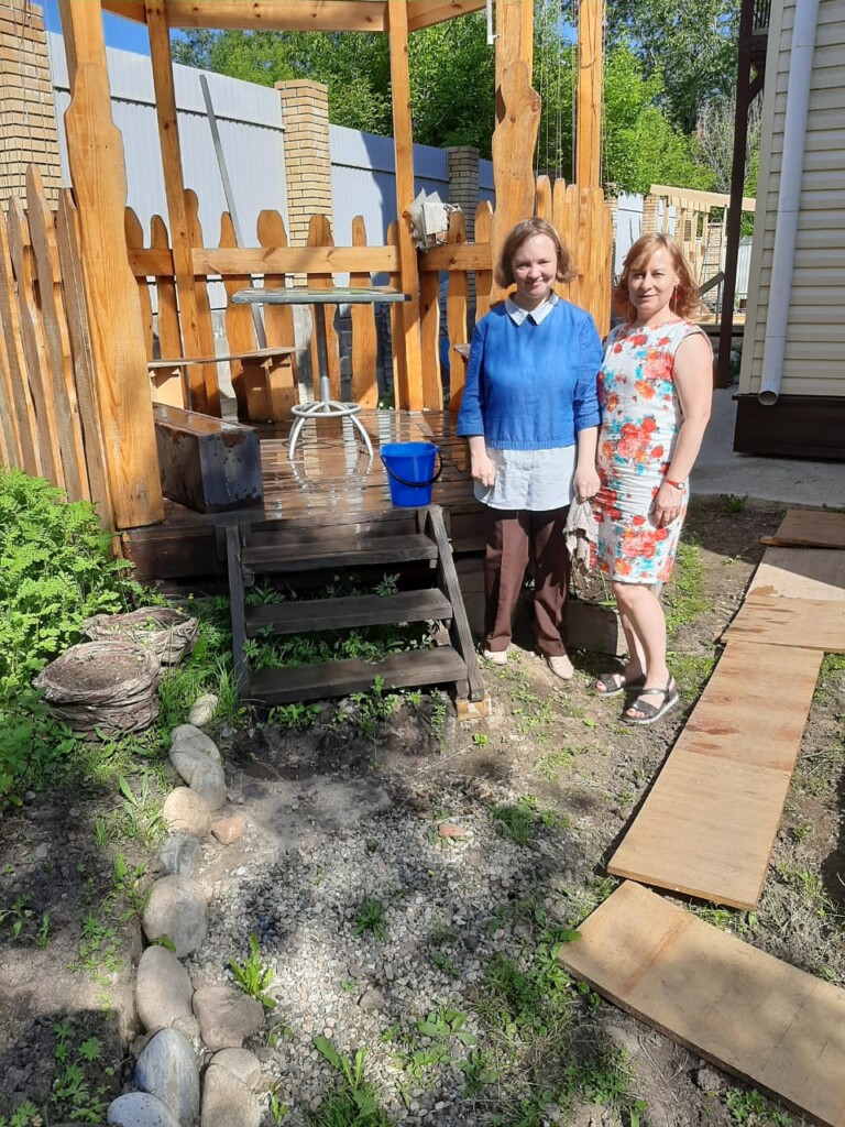 Наша замечательная беседка за эти годы стала одним из любимых мест на участке. Но при этом однажды выяснилось, что кое-что в ней требует ремонта, появились какие — то лишние предметы, а главное – ей потребовалась генеральная уборка после долгой зимы. Парни вынесли все лишнее, столяры подремонтировали, что требовалось, а Мария, засучив рукава, целый день отмывала ее от пыли и грязи. И вот, благодаря Маше наша беседка вновь сверкает и встречает нас.