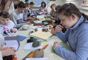Воспитанники «Надежды» не только сами учатся работать своими руками, но и делятся своими знаниями с другими. В рамках Недели неформального образования в мастерских «Надежды» проведен мастер-класс по изготовлению открыток. Ребята постарались при подготовке к нему, подготовили трафареты и материал для обложек, инструменты и бумагу. В гостях у нас были замечательные гости, ребята из интерната, которые многим похожи на нас. Работу выполняли дружно под руководством педагога полиграфической мастерской. Ребята оказались любознательными и добрыми, с желанием учиться. У них все получилось, цветной картон и сухоцветы послужили сырьем для обложки, а сами блокноты скрепили шпагатом. Получилось по-весеннему красиво. А еще мы познакомили гостей с эко-выставкой и мастерскими. Ждем ребят в наших стенах снова, подумаем, чем еще можем поделиться.
