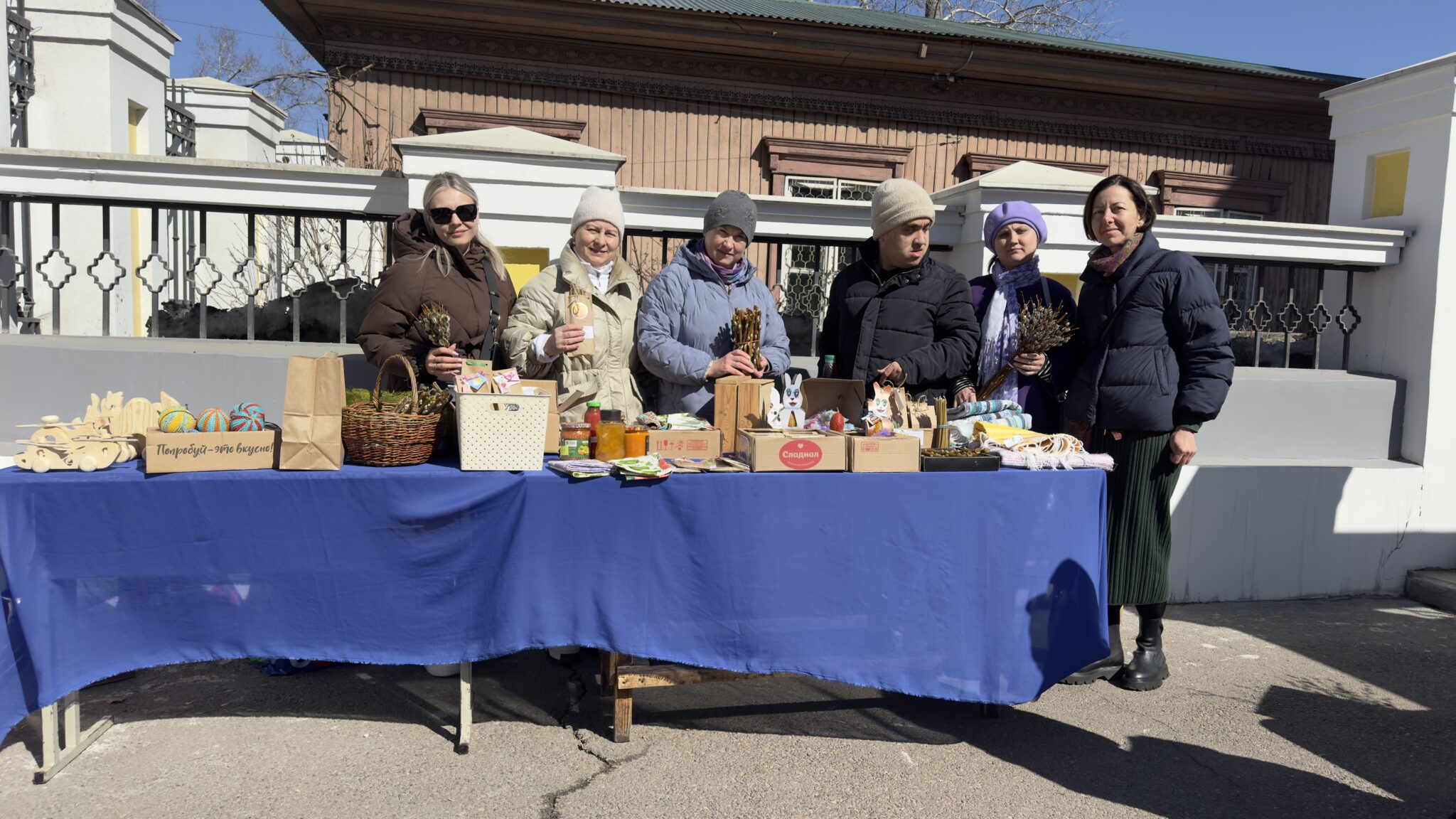 Прекрасная погода позволила постоять подольше, дождаться каждого задержавшегося в храме. Максим, Данила и Николай очень помогли, они привезли и разместили наши изделия, помогали носить и звали всех поучаствовать.